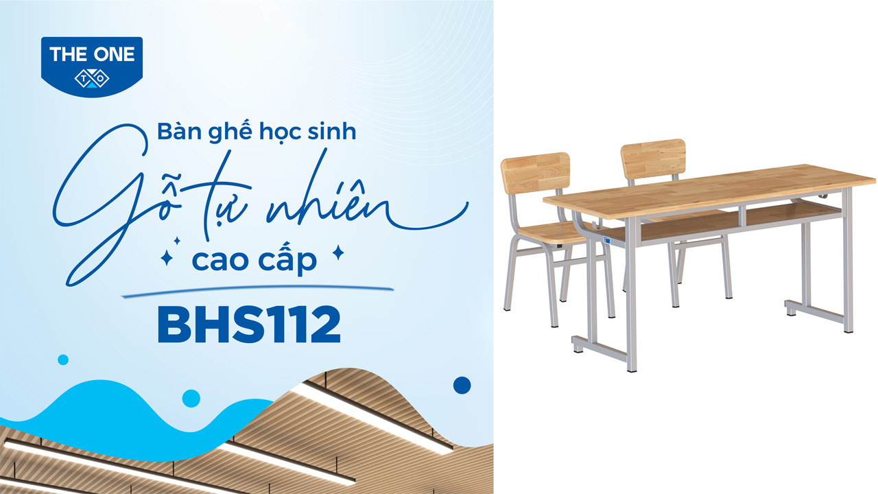 Mẫu bàn ghế học sinh gỗ tự nhiên BHS112 của Nội Thất The One.