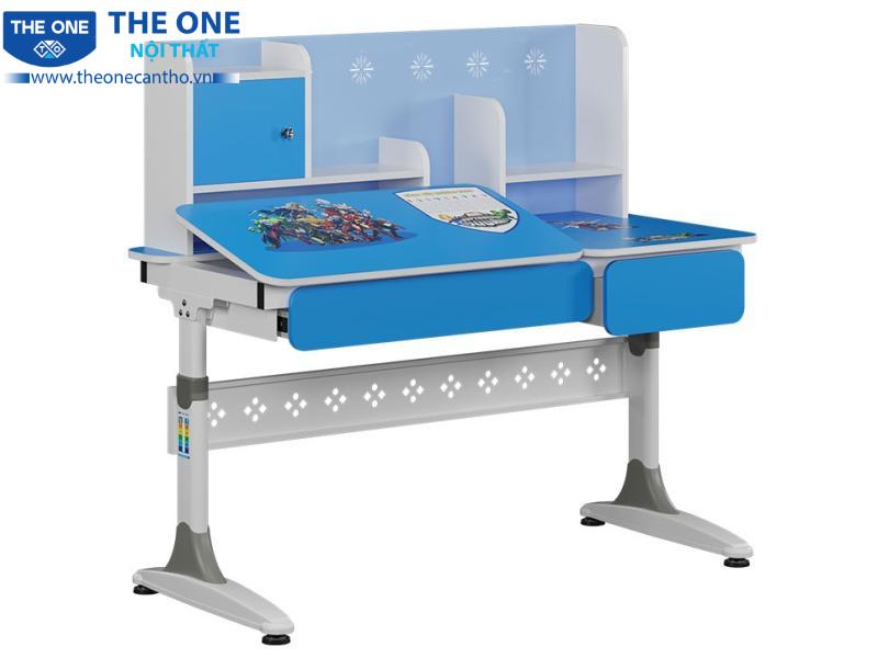 Bên dưới mặt bàn là hai ngăn kéo riêng biệt, giúp trẻ dễ dàng phân loại và sắp xếp đồ dùng học tập một cách khoa học, gọn gàng. Phía trên có một hộc cánh mở để đựng đồ dùng học tập thường xuyên sử dụng, giúp trẻ dễ dàng tiếp cận mà không cần phải cúi xuống hoặc di chuyển nhiều.