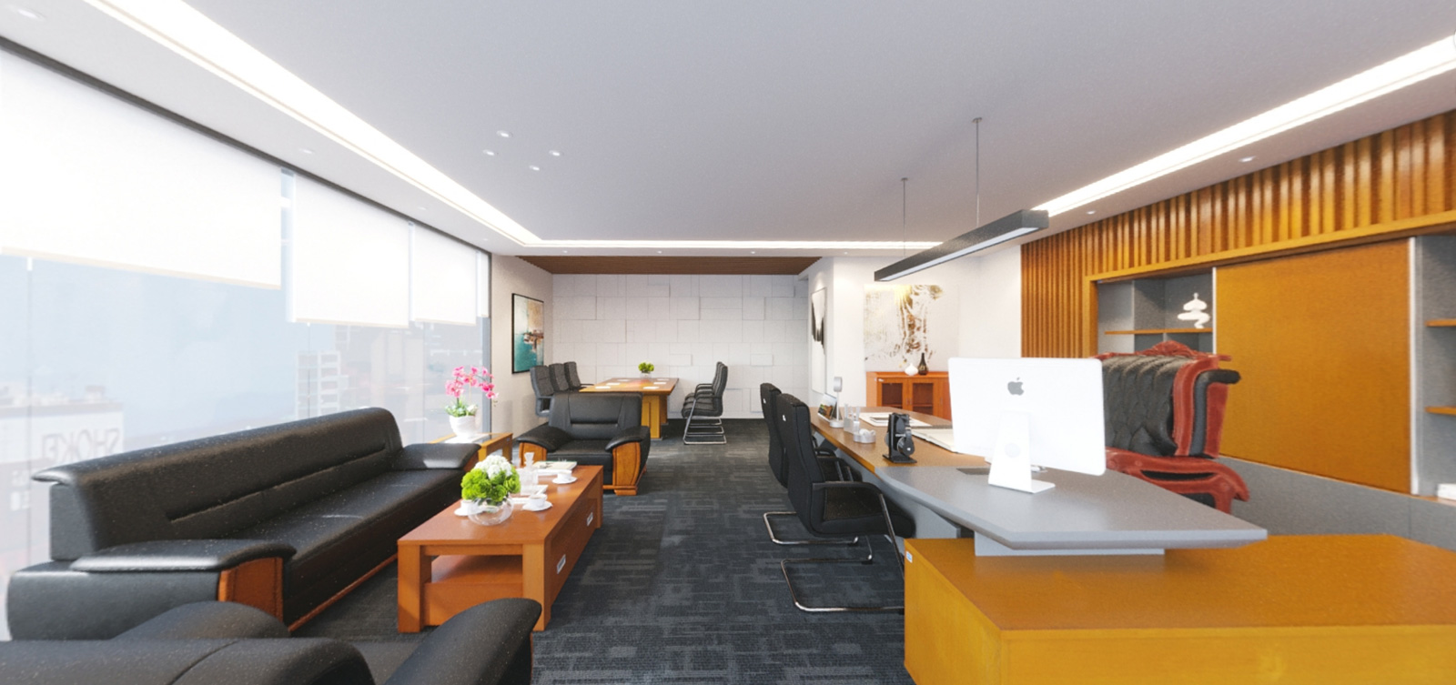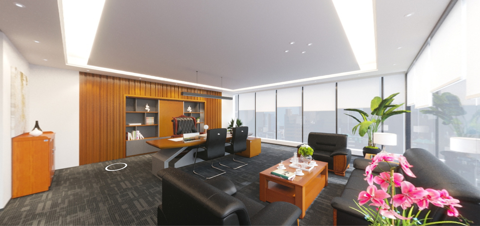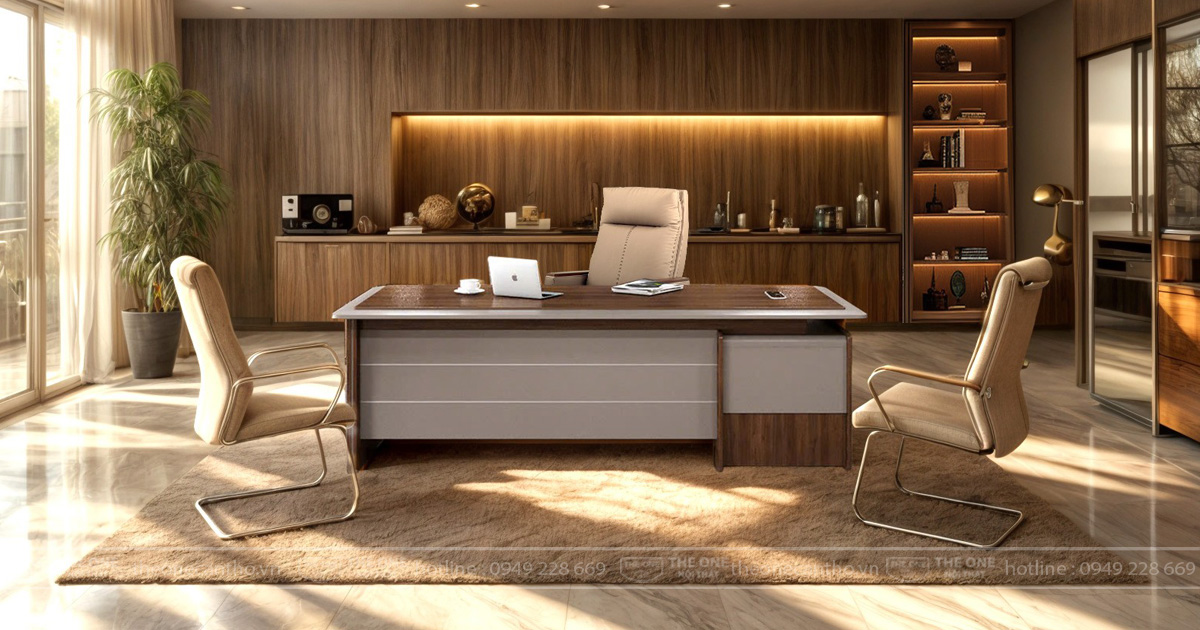 Bàn lãnh đạo được kết hợp với các sản phẩm nội thất hiện đại trong phòng làm việc.