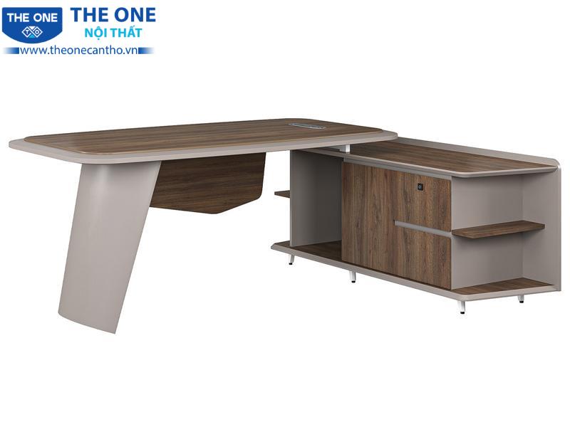 Mẫu bàn thuộc dòng sản phẩm cao cấp của Nội Thất The One, được chế tác tỉ mỉ với chất liệu melamine kết hợp với sơn PU cao cấp tạo nên vẻ đẹp sang trọng và đẳng cấp. Thiết kế tủ phụ liền bàn mang đến không gian lưu trữ tiện lợi, giúp người dùng sắp xếp tài liệu, hồ sơ một cách khoa học và gọn gàng.