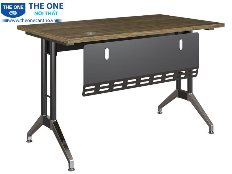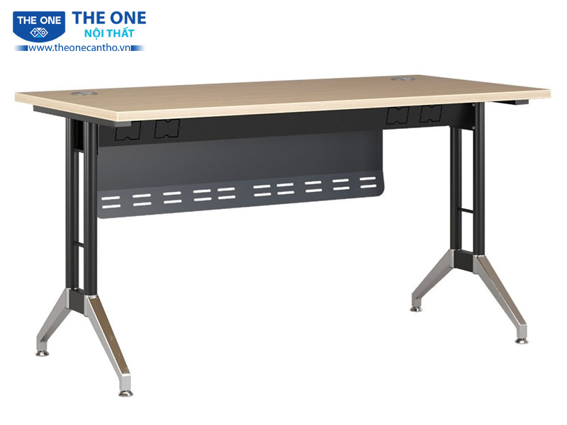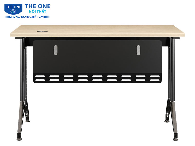 Yếm tôn phía trước không chỉ tăng tính thẩm mỹ mà còn bảo vệ không gian riêng tư cho người sử dụng, tạo cảm giác thoải mái khi làm việc. Chân bàn được thiết kế với sự kết hợp tinh tế giữa ống thép sơn đen và mạ, vừa đảm bảo tính thẩm mỹ cao vừa mang đến độ chắc chắn và ổn định cho sản phẩm.