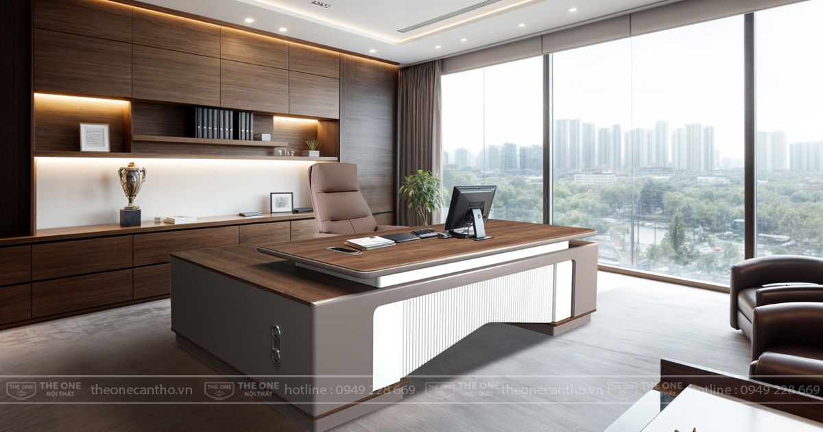 Bàn lãnh đạo tại The One Cần Thơ là sự kết hợp hoàn hảo giữa thiết kế sang trọng và công năng sử dụng tối ưu. Với nhiều series như Royal, Luxury, Executive, mỗi sản phẩm đều mang đậm dấu ấn riêng: