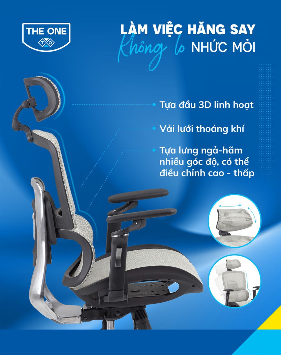 Sản phẩm ghế công thái học The One được thiết kế tinh tế và cao cấp.
