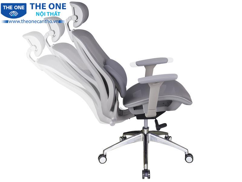Phần tựa lưng của ghế được thiết kế công thái học với khung nhựa cao cấp bọc vải lưới thoáng khí, có độ chịu lực cao. Đặc biệt, tựa lưng có thể ngả hãm theo ý muốn và được trang bị thêm hệ thống đỡ lưng đặc biệt, giúp nâng đỡ hoàn hảo phần thắt lưng - vùng dễ bị tổn thương nhất khi ngồi lâu.