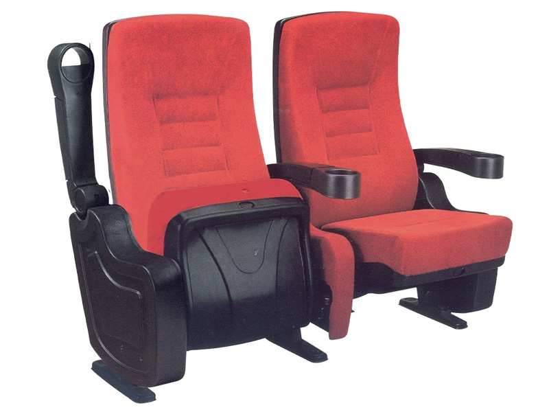 Ghế hội trường cao cấp sử dụng khung thép kết hợp nhựa, đệm tựa ghế bằng mút đúc bọc vải.