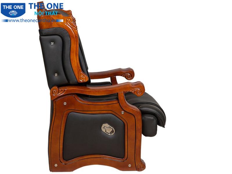 Ghế lãnh đạo TQ26 gây ấn tượng mạnh với thiết kế độc đáo theo phong cách ngai vàng cổ điển, thể hiện qua phần lưng tựa cao, rộng và các đường viền trang trí tinh xảo. Kiểu dáng này mang đến vẻ đẹp sang trọng, quý phái và đầy quyền lực, phản ánh vị thế của người lãnh đạo trong môi trường công sở hiện đại.