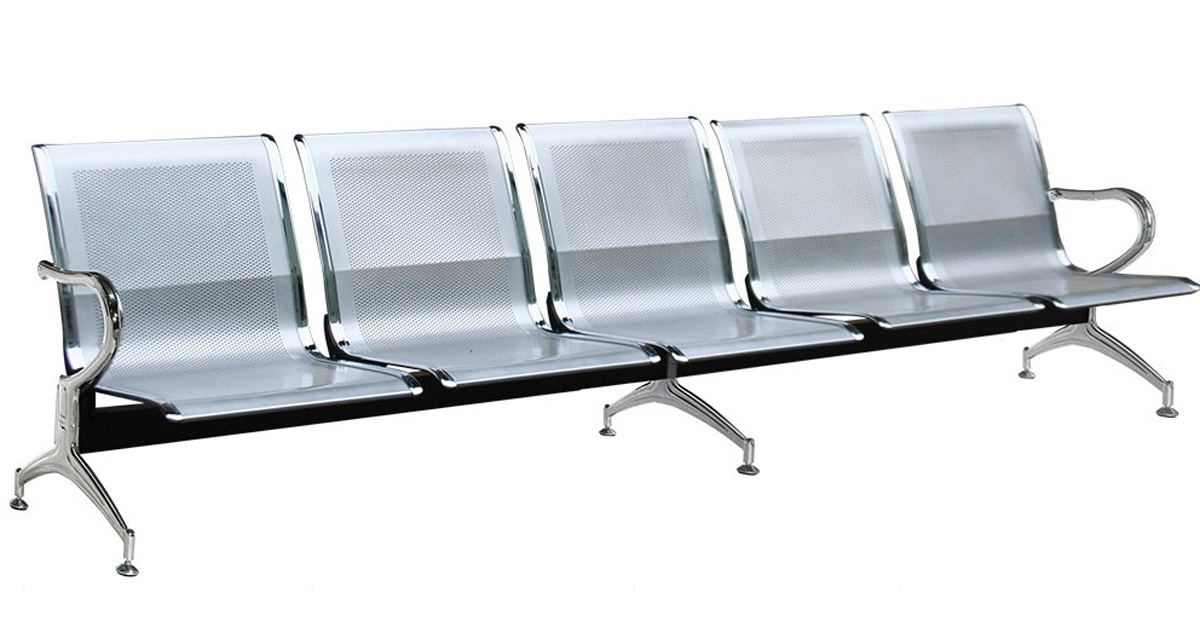 Mẫu ghế chờ 5 băng khung sắt sơn tĩnh điện, tựa inox.