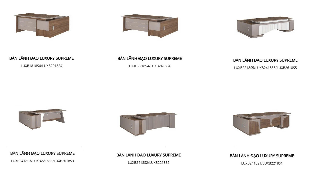 Ba dong bàn lãnh đạo này mang đến trải nghiệm đẳng cấp cho lãnh đạo. Các sản phẩm trong danh mục này thường có thiết kế độc quyền, chất lượng vượt trội và độ bền cao.