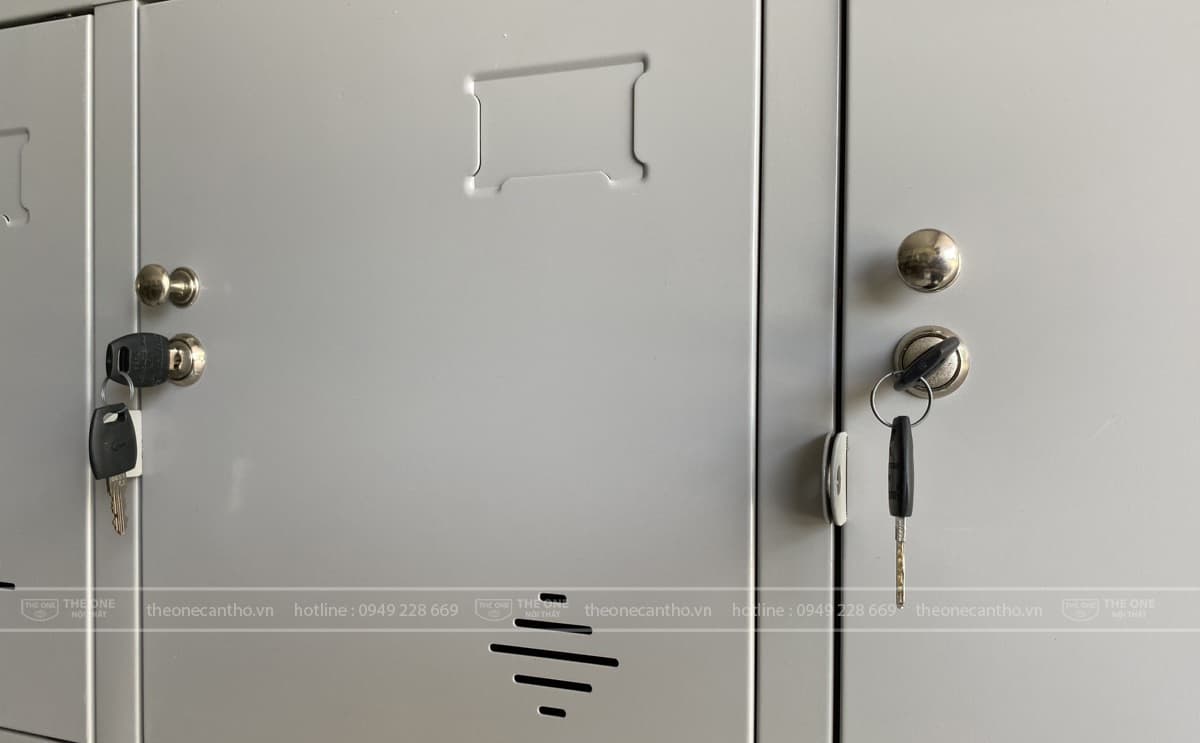 Hệ thống khóa của tủ sắt locker 12 ngăn được thiết kế đặc biệt nhằm đảm bảo an toàn tuyệt đối cho tài sản cá nhân. Mỗi ngăn đều có khóa riêng, giúp bảo vệ đồ đạc khỏi sự xâm nhập của người khác.