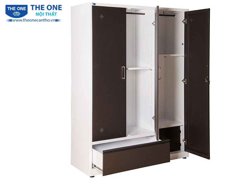 Tủ sắt gia đình sơn tĩnh điện, tủ gồm 2 khoang lớn và 1 ngăn kéo.