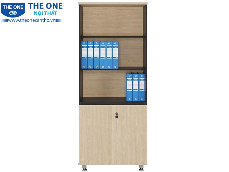 Phần dưới của tủ tài liệu gồm 2 khoang với cánh đóng kín, được trang bị khóa an toàn, là nơi lý tưởng để lưu trữ những tài liệu quan trọng, cần được bảo mật. Tay nắm vát cạnh tinh tế không chỉ tăng tính thẩm mỹ mà còn mang lại cảm giác chắc chắn, dễ sử dụng khi mở đóng tủ.
